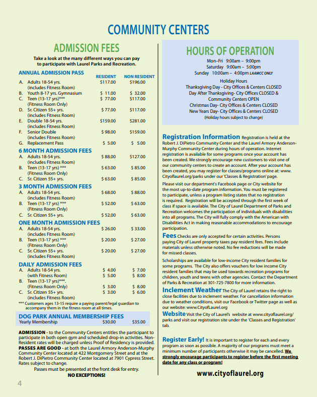 Laurel Parks and Recreation Winter Seasonal Brochure 2025